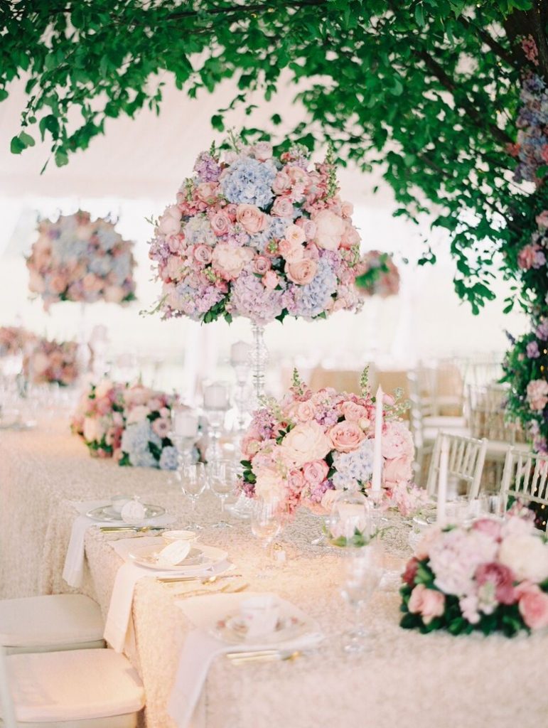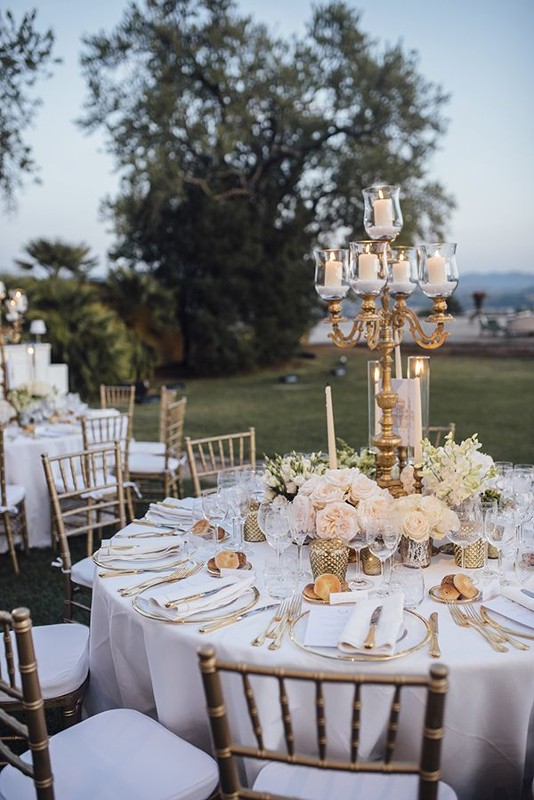 Il castello è la location perfetta per questo tema, grazie all’atmosfera magica e solenne che è in grado di richiamare. Decorate le ampie sale con composizioni floreali raffinate e impreziosite con lampadari di cristallo e alti candelabri, perfetti per creare giochi di luce unici. Dal rosa antico al bianco o all’avorio, la palette di colori dovrà essere soft e delicata.
