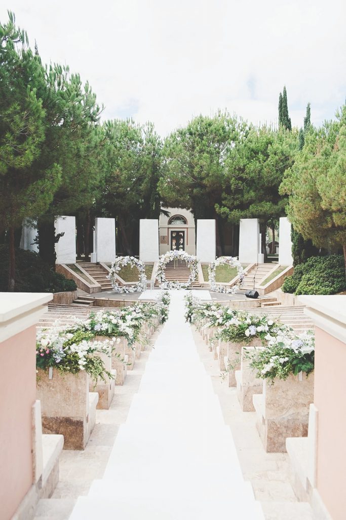 La location di questo matrimonio minimal chic è l’incantevole Villa Padierna a Marbella, città spagnola sulla Costa del Sol, in Andalusia. Uno spazio perfetto e immerso nel verde, in piena tendenza greenery, un colore di buon auspicio per simboleggiare il nuovo periodo della vita che inizia a partire proprio da quel giorno.