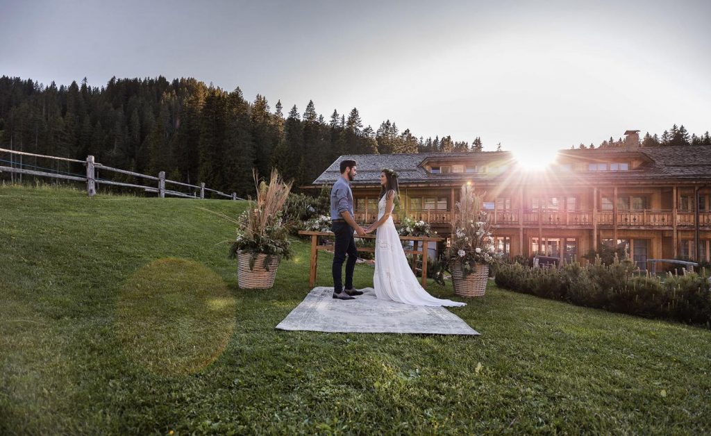 Sarà direttamente il sindaco di Castelrotto a condurre la cerimonia che permetterà alle coppie di giurarsi amore eterno in un panorama mozzafiato. Una delle location dove è possibile coronare il proprio amore per l’eternità è allestita all’interno di un’incantevole sala con camino che gode di vista sulla piscina e sulle montagne più belle, le Terre Rosse. Per chi preferisce l’esterno, l’hotel mette a disposizione un giardino da cui si possono ammirare il Sasso Lungo e il Sasso Piatto, icone dell’Alto Adige.